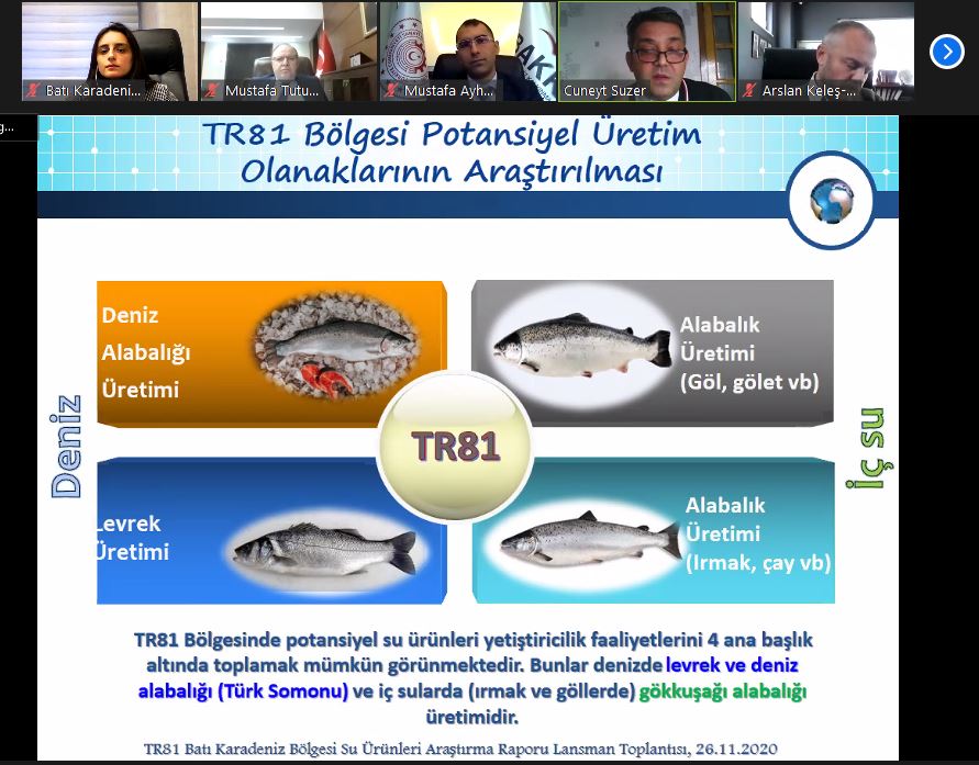 Batı Karadeniz Kalkınma Ajansı tarafından başlatılan ve bölgenin kalkınma hamleleri ile sektörel çeşitliliğe katkı sağlamasına yönelik hazırlanan “Batı Karadeniz Bölgesi Su Ürünleri Araştırma Raporu” çalışmasının lansmanı 26 Kasım Perşembe günü çevrimiçi olarak gerçekleştirildi. Vali Tutulmaz başkanlığında yapılan toplantıya, Kalkınma Ajansı, Ticaret ve Sanayi Odaları, Sivil Toplum kuruluşları ve kamu kurumlarının temsilcileri katılım sağladı.