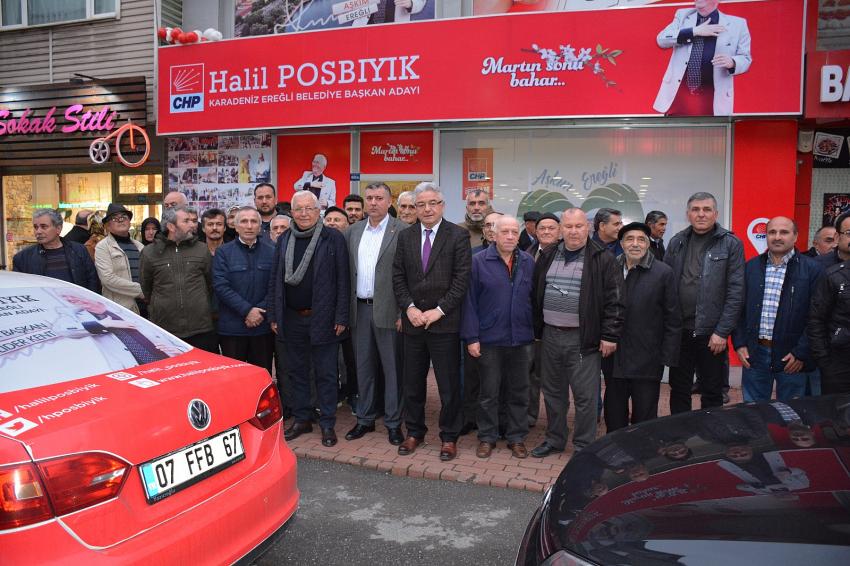 Erdemir Caddesi Özdemir Park AVM karşısında bulunan Seçim Ofisine gelerek CHP Ereğli Belediye Başkan Adayı Halil Posbıyık’a ziyarette bulunan Ereğli’de yaşayan Devrekliler, 31 Mart’ta yapılacak yerel seçimlerde Posbıyık ve ekibine açık destek vereceklerini ifade ettiler.