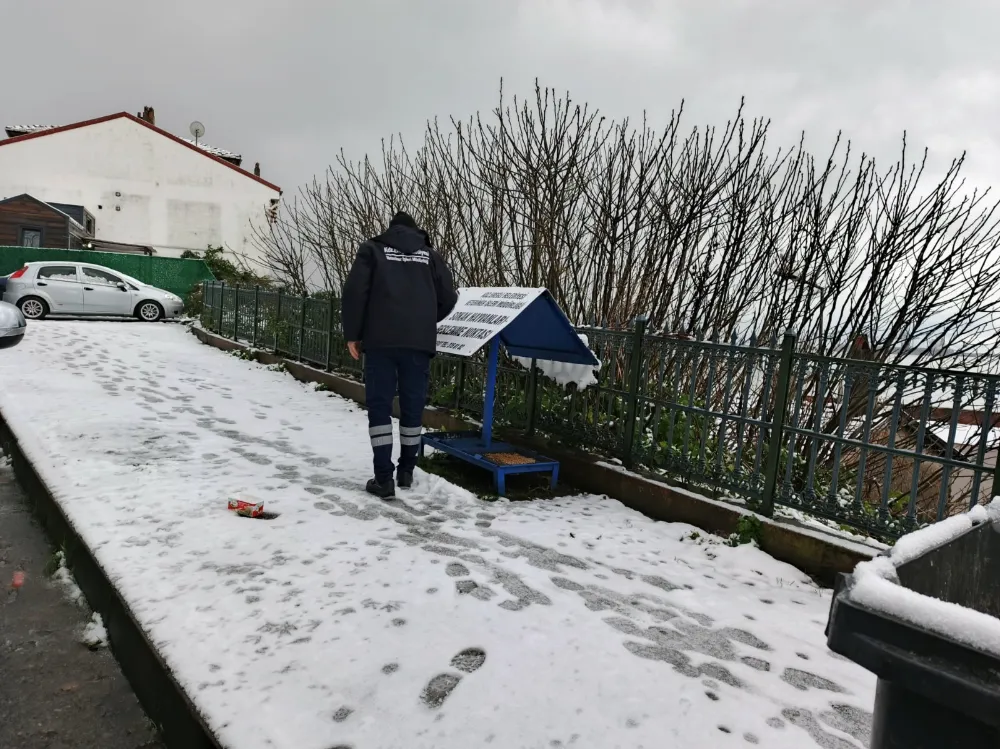 Kdz. Ereğli Belediyesi Veteriner İşleri Müdürlüğü ekipleri, sabah saatlerinden itibaren kentte etkili olan kar yağışı ve soğuk havada sokaktaki canları unutmadı. Kar yağışı nedeniyle yiyecek bulmakta zorlanan sokak hayvanları için park ve yeşil alanlara mama bırakıldı, kanatlı hayvanlar için Atatürk Anıtı ve sahil bölgesine yem bırakıldı. Sokak hayvanlarına ait barakalar kardan temizlenerek daha güvenli hale getirildi. Siz de bu zorlu kış günlerinde evinizin önüne bir kap yemek ve su bırakarak onlara destek olabilirsiniz.