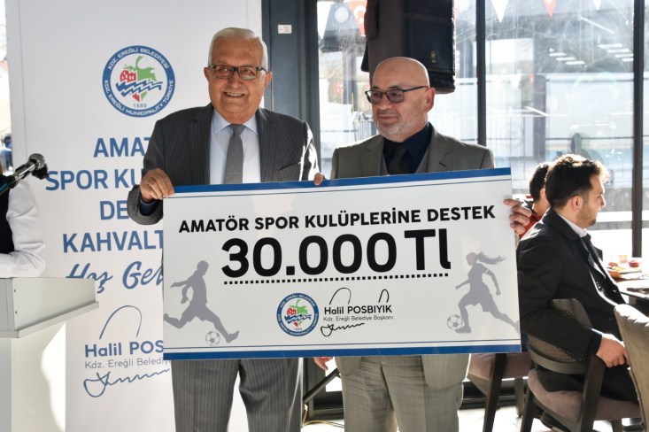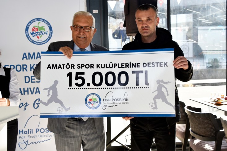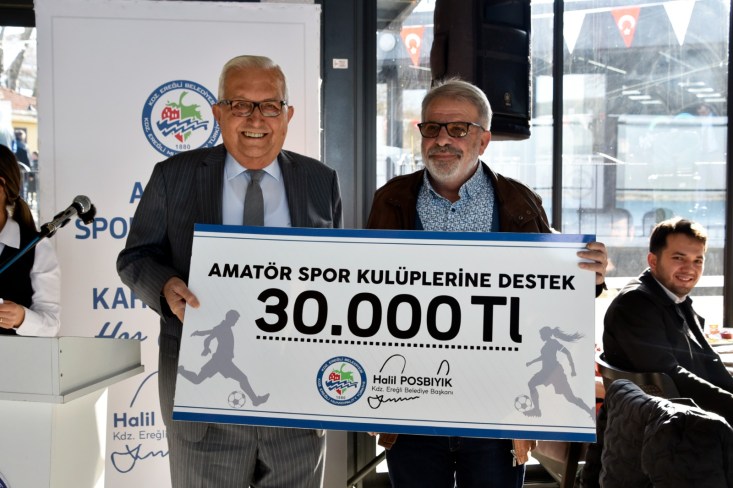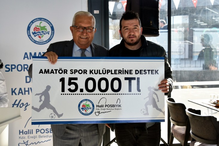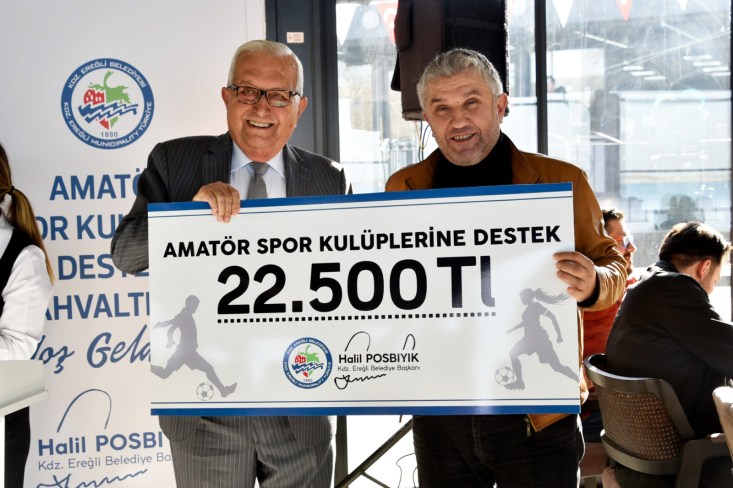Kdz. Ereğli Belediye ve Belediyespor Kulüp Başkanı Halil Posbıyık, kentteki amatör spor kulüplerinin başkan ve yöneticileriyle bir araya gelerek 17 kulübe 375 bin TL nakdi yardımda bulundu.