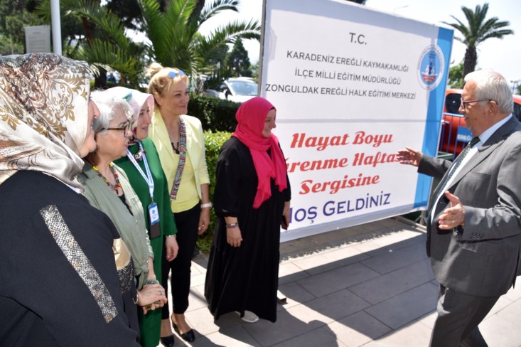 Kdz. Ereğli Belediye Başkanı Halil Posbıyık, beraberinde CHP ve AK Parti Grubu Belediye Meclis Üyeleriyle birlikte sergileri gezdi. Halk Eğitim Merkezi Müdürü Metin Bozkurt ve kurs hocaları tarafından karşılanan Başkan Posbıyık, tüm sergileri dolaştı, kursiyerleri tebrik etti.