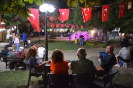 Sanat Sokağı’nda Pazar akşamı canlı müzik coşkusu yaşandı. İki haftadır devam eden hafta sonu canlı müzik etkinliği yine büyük ilgi gördü. Vatandaşlar, şarkılara, türkülere eşlik etti, halay çekti, horon tepti.