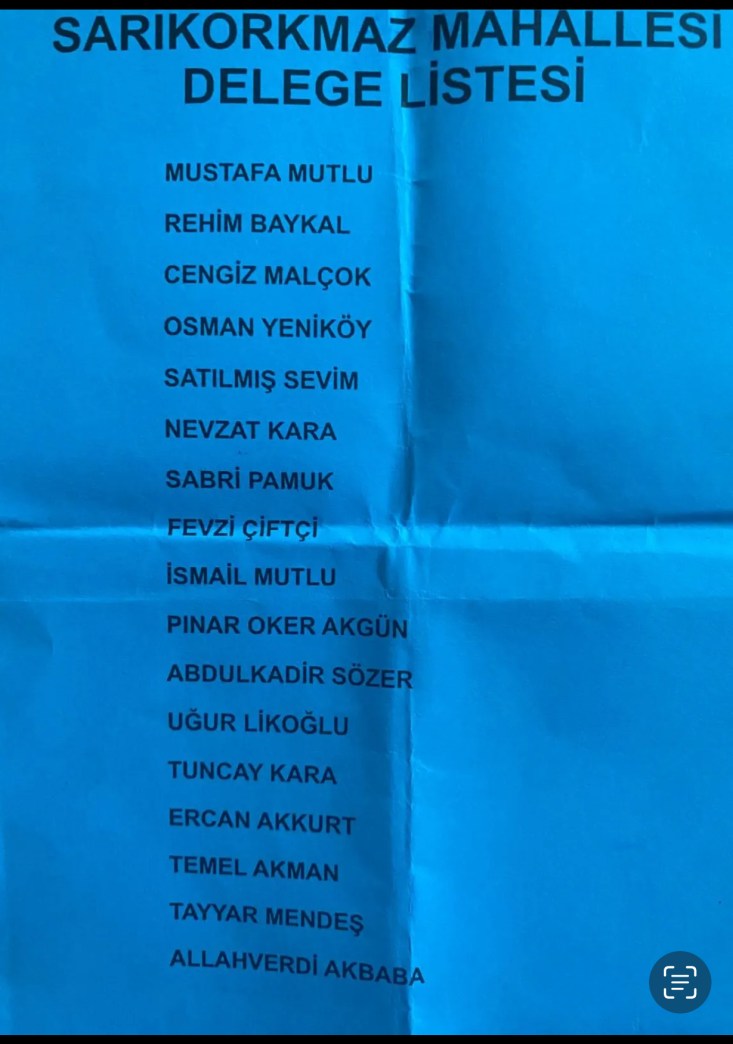 İlçe Başkanı Ali Kocamanoğlu’nun beyaz listesi Sarıkorkmaz’da 34 oy alırken; muhaliflerin mavi listesi ise 117 oy aldı.